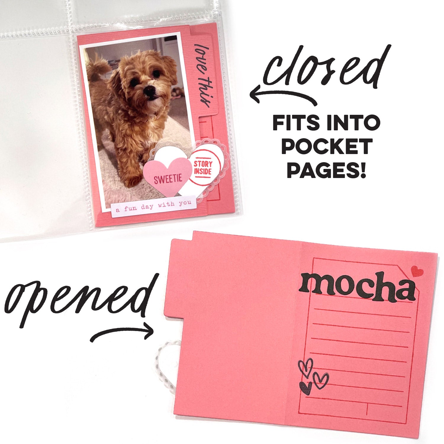 Create folding tabbed tags with this metal die! Once folded, papers cut with this die will fit into 3 x 4 pocket pages! This entire die measures 5.75 x 4 inches and the tab on this die fits all of our tabbed themed word stamps!