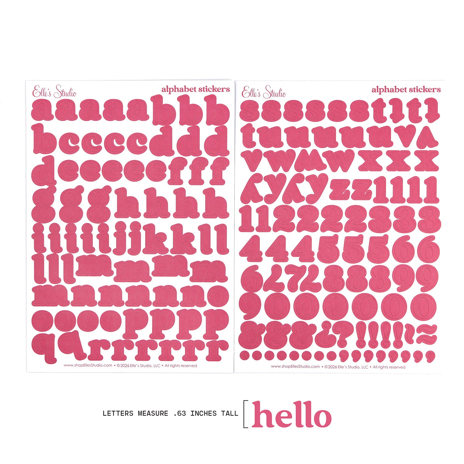 Pink Noel Cardstock Alphabet Stickers Sale! from $4.99 USD /per Produc variants Default Title Qty. Add to Cart Couldn't load pickup availability Refresh Our matte cardstock alphabet stickers come on two 5 x 7 inch sheets as shown here in this photo. These letters measure approximately .63 inches tall.